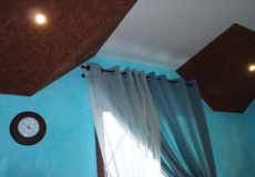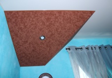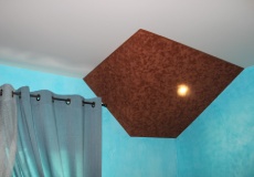 Удачно будет смотреться выполненное под замшу потолочное покрытие в заведения общественного назначения (фешенебельных салонах, ресторанах, бутиках и т. д.). С помощью замшевых фактур вы сможете подчеркнуть дорогостоящую отделку, эксклюзивность декоративных элементов. Такой потолок будет уместен в бильярдной, что объясняется гармоничным сочетанием замши с сукном столов для игры в бильярд.